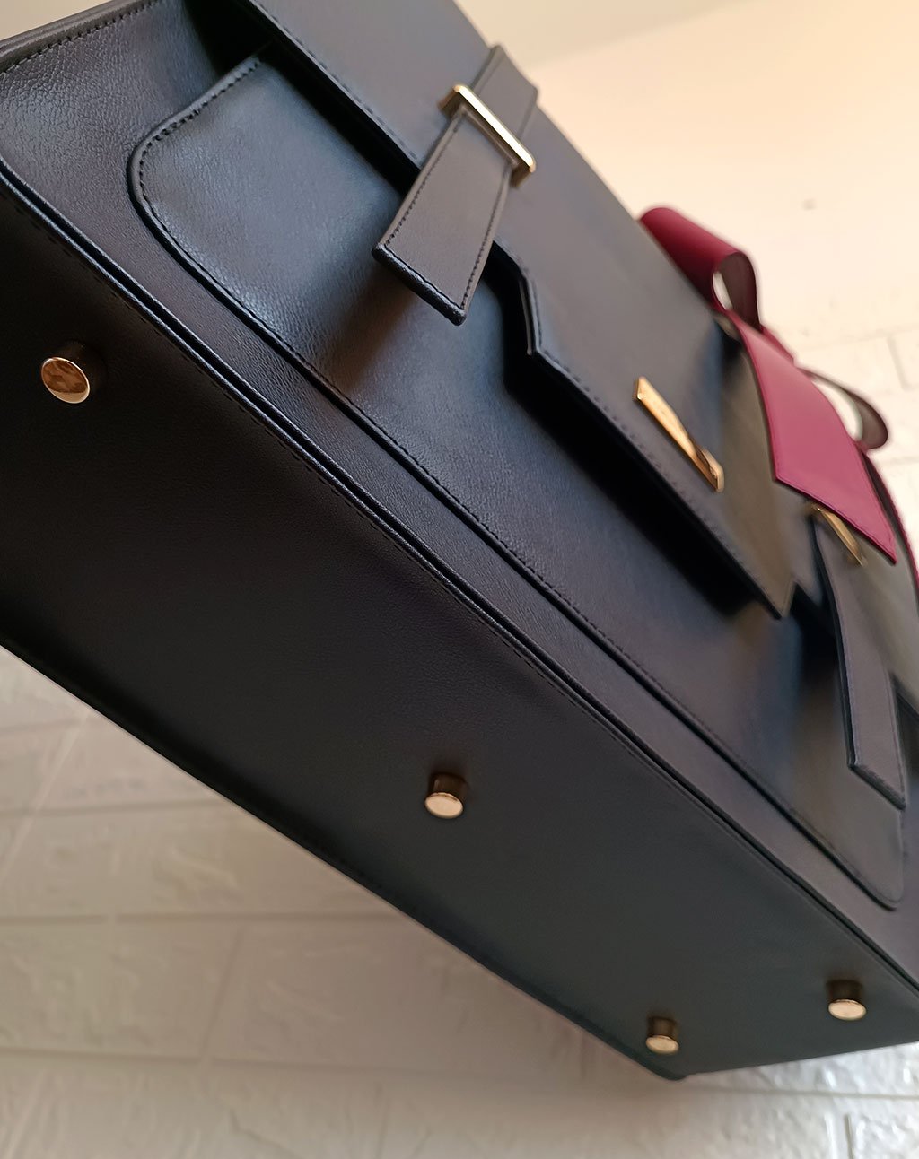 El bolso esta elaborado en material vegano que es un material alternativo al cuero vacuno (sintético de alta calidad).