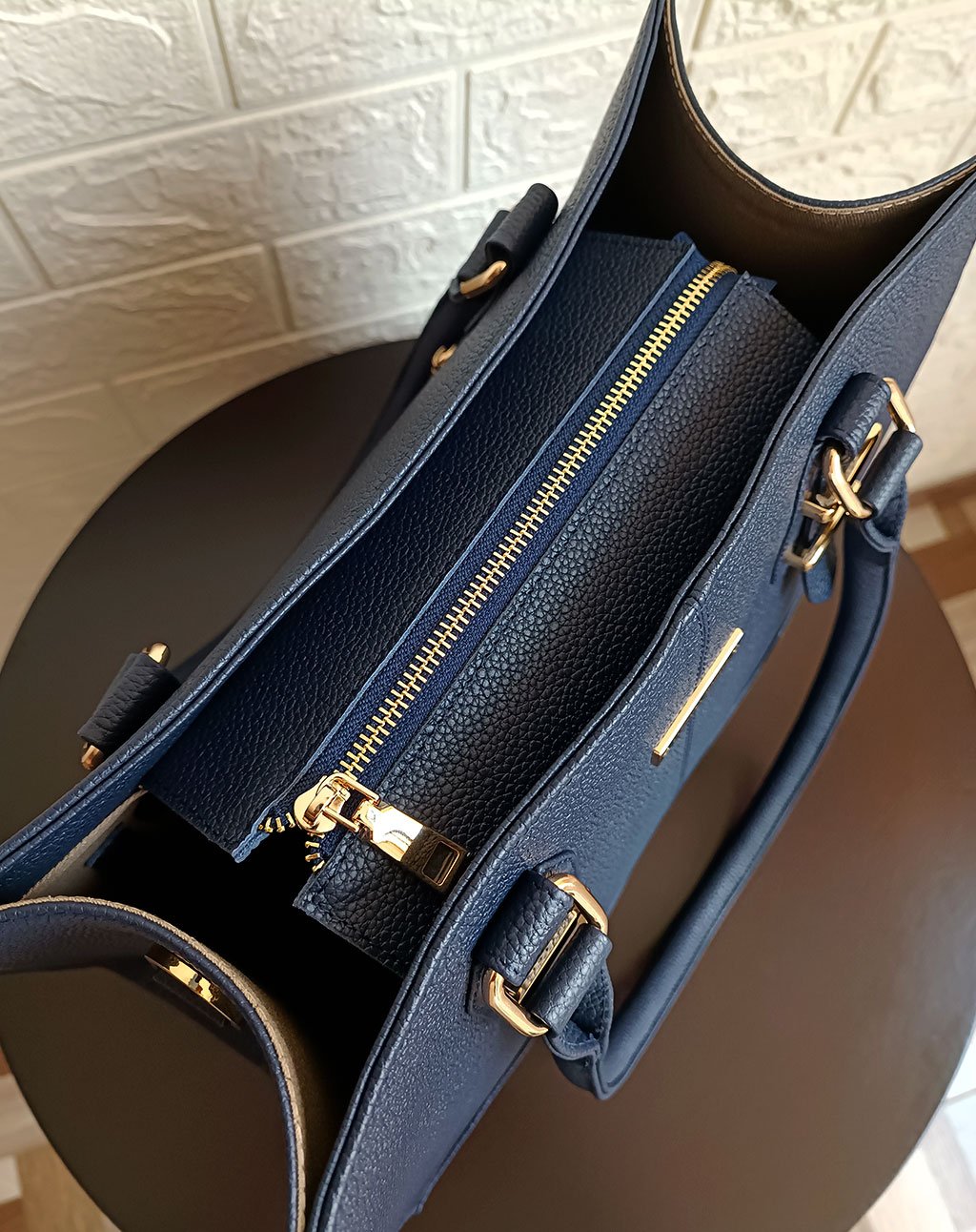 Cuenta con compartimentos internos pensados para el día a día, y detalles metálicos que protegen y realzan su presencia. Ideal para quienes valoran la sobriedad con carácter.