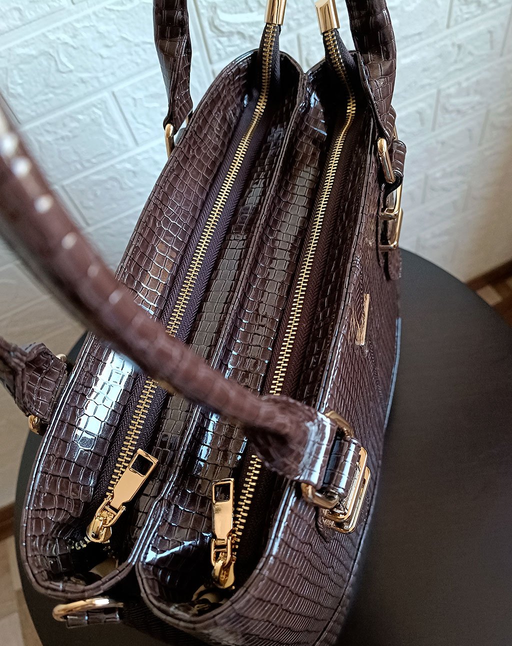 ✔ Material premium: Vegano sintético de alta calidad con una textura croco charol.
