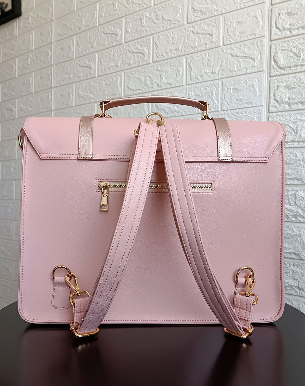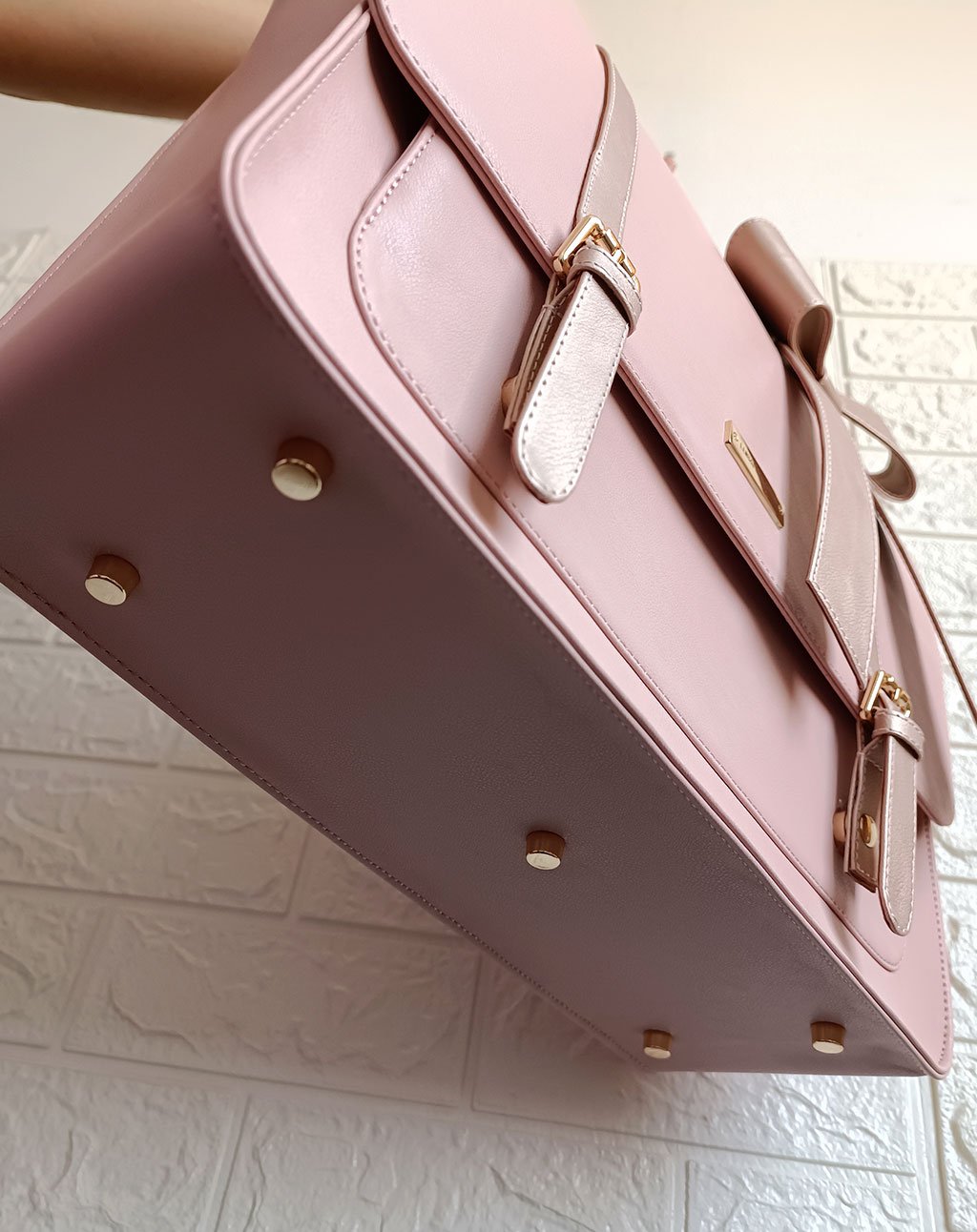 El bolso esta elaborado en material vegano que es un material alternativo al cuero vacuno (sintético de alta calidad).